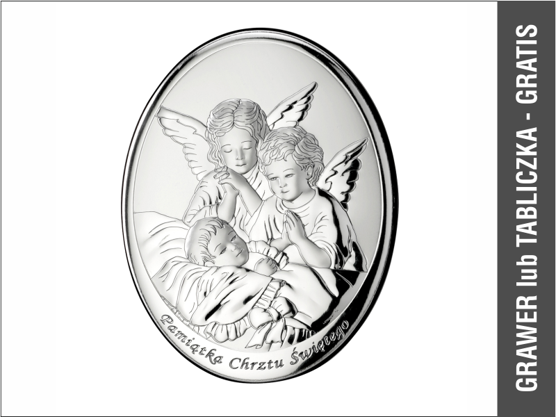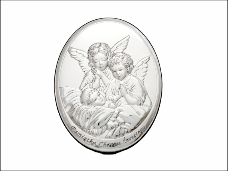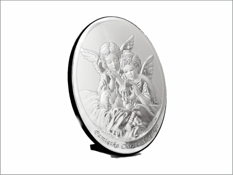 Srebrny Obrazek "Aniołki nad dzieckiem z napisem 604 owalny".