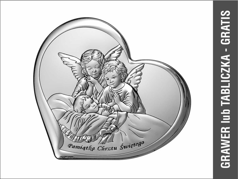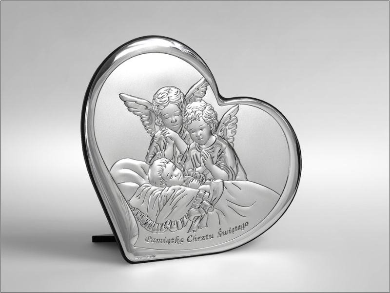Srebrny Obrazek "Aniołki nad dzieckiem w sercu z podpisem 6451".
