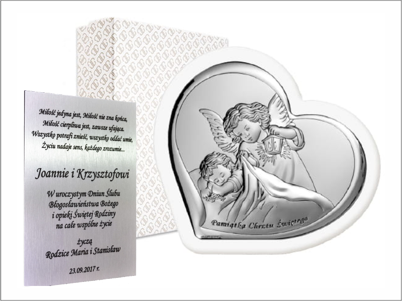 Na srebrnym obrazku możemy wykonać indywidualny grawer dedykacji.
