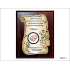 Dedykacja na podkładzie wykonana jest w formie przyciętego na kształt zwoju złotego laminatu z grawerem.