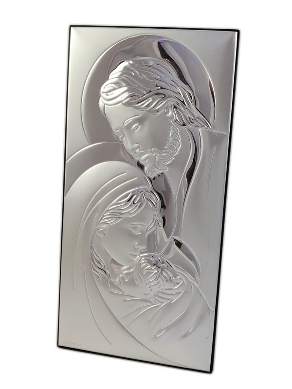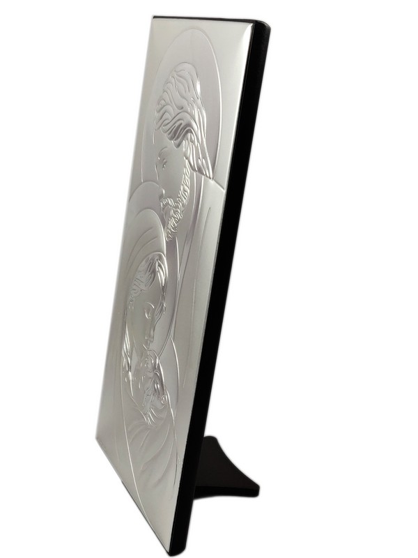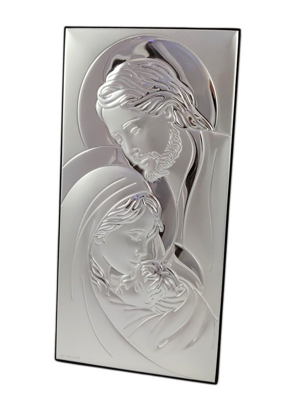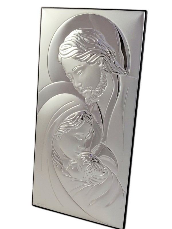Srebrny obrazek w prostokątnym kształcie przedstawia wizerunk "Świętej Rodziny 6380".
