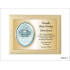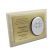 Dedykacja jest wygrawerowana w złotym laminacie, w którym wycięte jest także miejsce na srebrny obrazek.