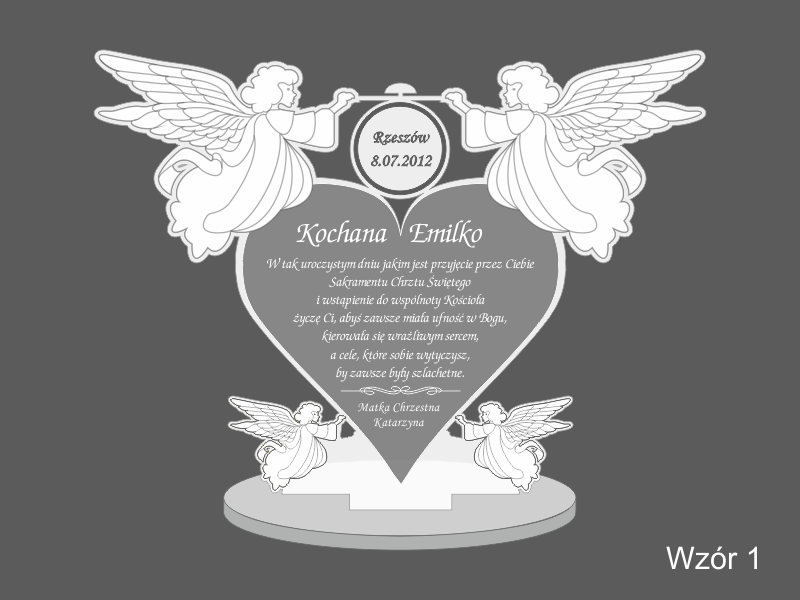 Istnieje możliwość wygrawerowania dedykacji wg indywidualnych ustaleń i projektu.