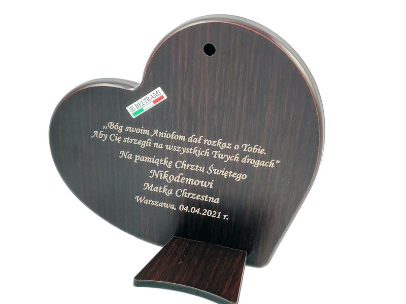 Grawer dedykacji wykonany jest bezpośrednio w drewnie lub na osobnej dołączonej tabliczce.