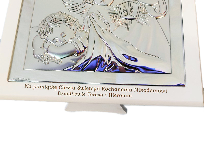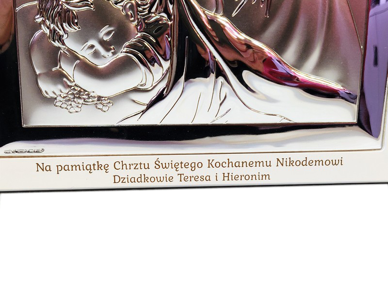 Na srebrnym obrazku możemy wykonać indywidualny grawer dedykacji.