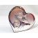 Srebrny obrazek "Aniołek z latarenką nad dzieckiem 6448" w kształcie serca ma wygrawerowaną na odwrocie dedykację z okazji Chrztu Świętego.