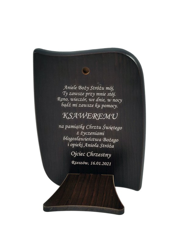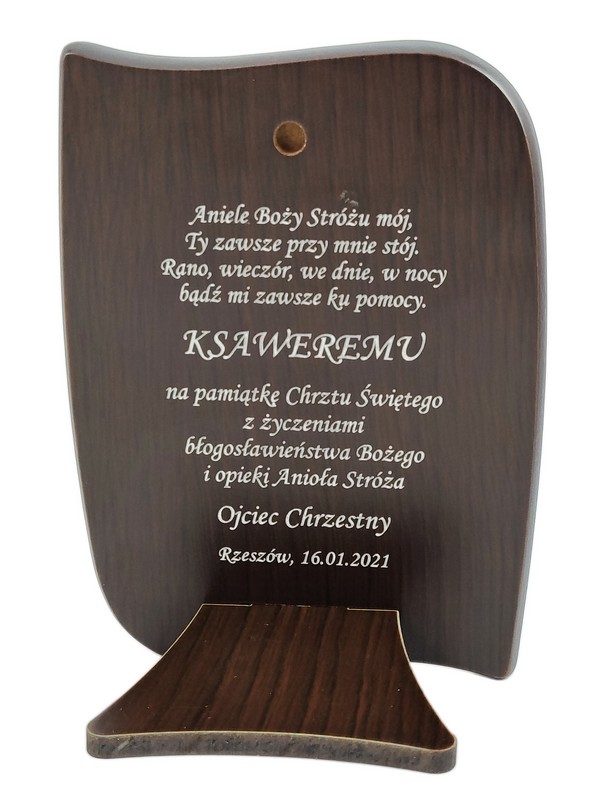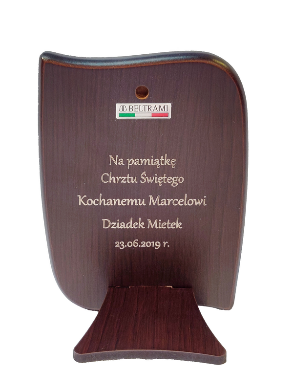Grawer dedykacji wykonany jest z tyłu obrazka bezpośrednio na drewnie lub na osobnej dołączonej tabliczce.