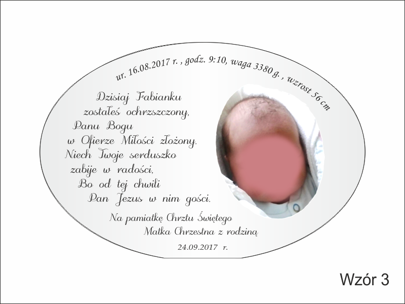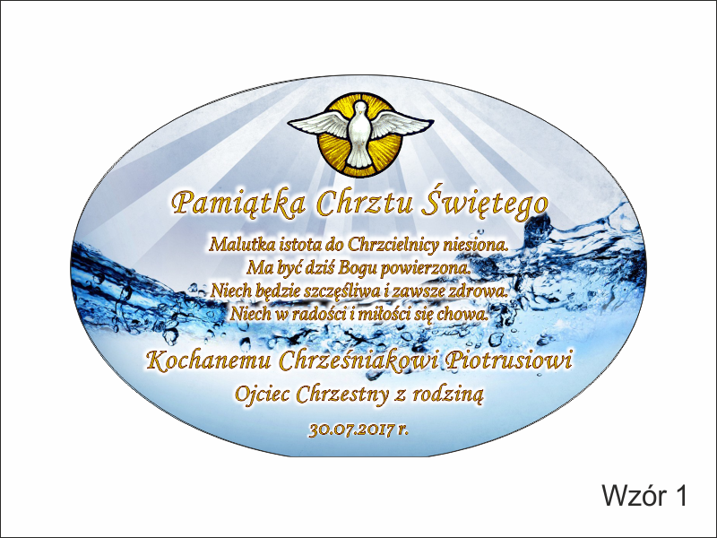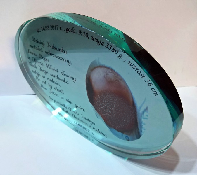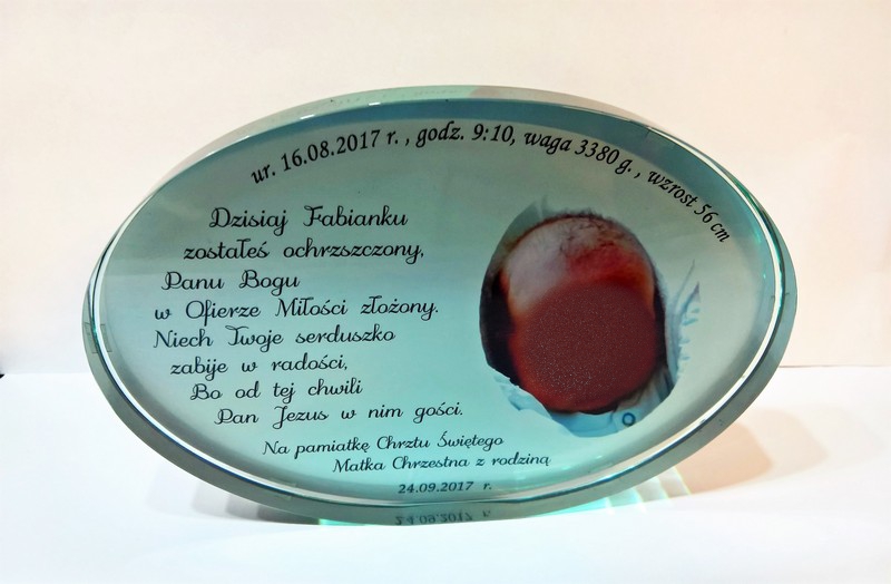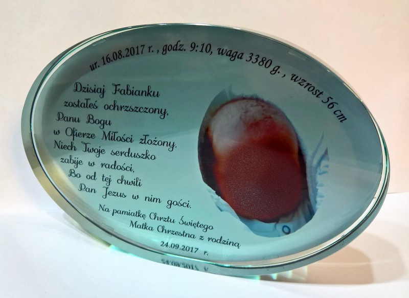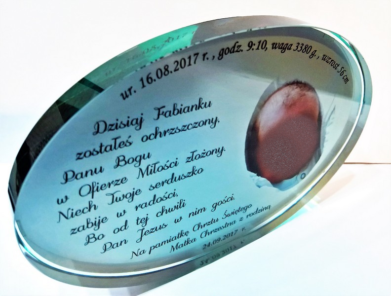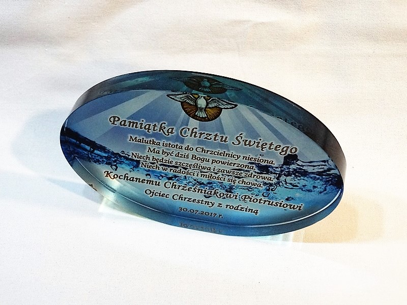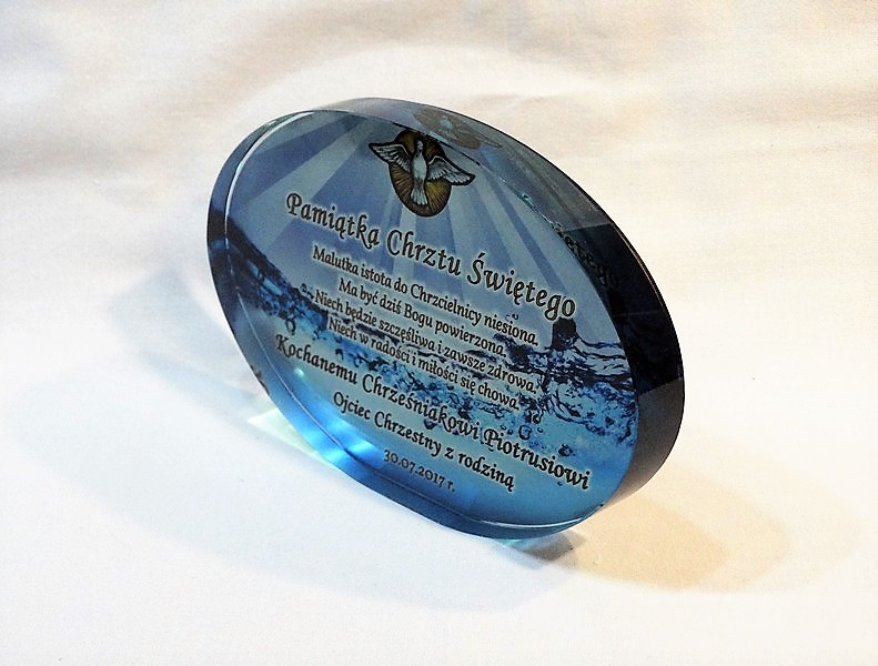 Pamiątka Chrztu - szkło elipsa z nadrukiem dla chłopczyka