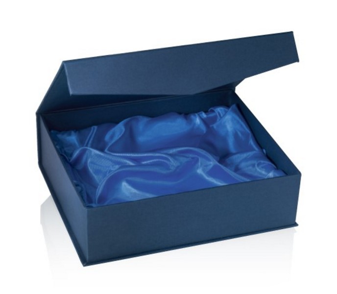 Szkło pakowane jest w ozdobne, kartonowe, wyściełane materiałem, niebieskie etui.
