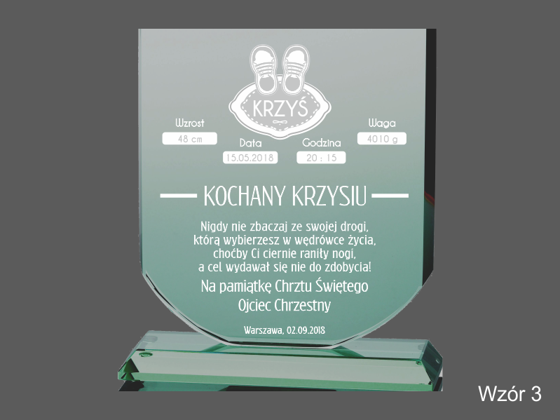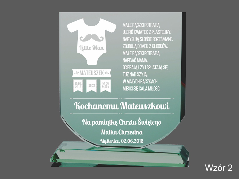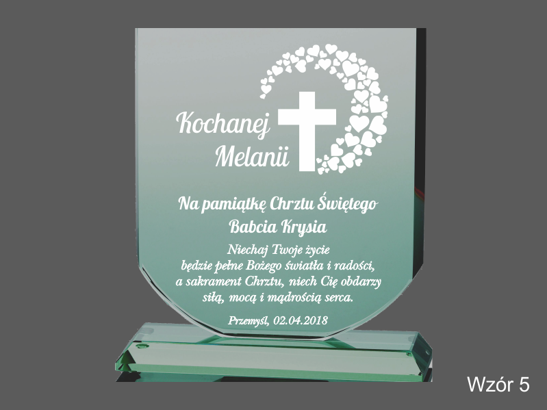 Istnieje możliwość graweru dedykacji wg indywidualnych ustaleń i projektu uzgodnionego z klientem lub wg jednego z wzorów.