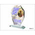 Statuetka szklana z grubego szkła w kształcie szlifowanego wyciągniętego ośmioboku z nadrukiem dedykacji i ozdobnych grafik z okazji Chrztu Świętego.