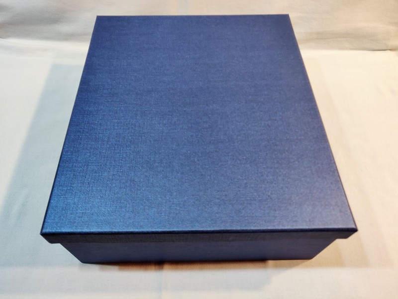 Szkło pakowane jest w ozdobne, kartonowe, wyściełane materiałem, niebieskie etui.