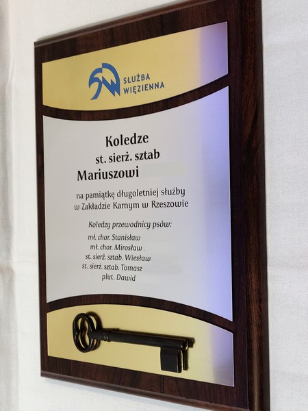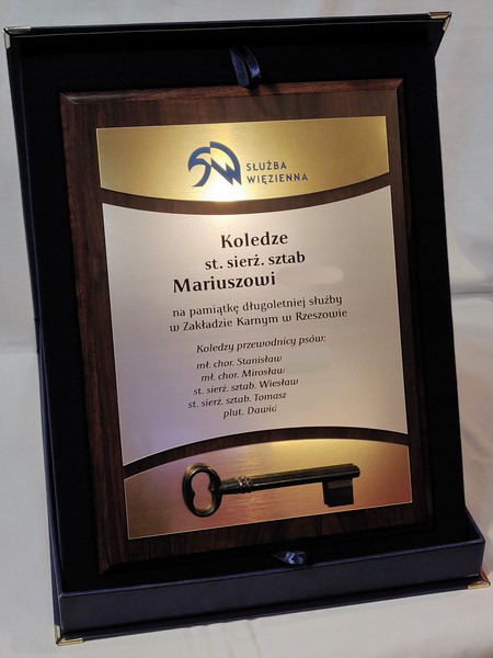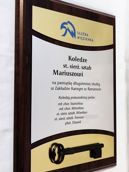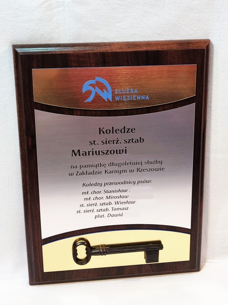 - z laminatów grawerskich (srebrnego, złotego) z grawerowaną dedykacją,