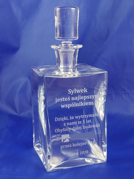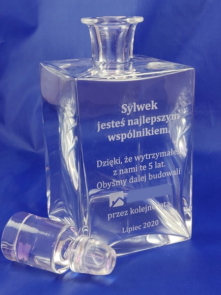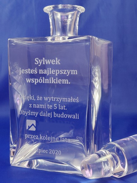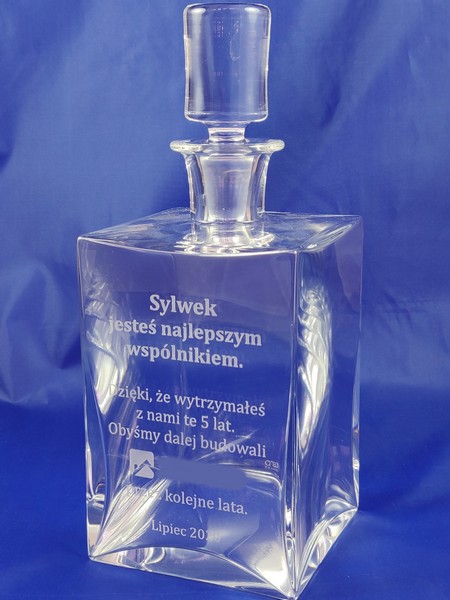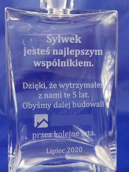 Na karafce wykonany jest grawer okolicznośćiowej dedykacji z podziękowaniem za współpracę.