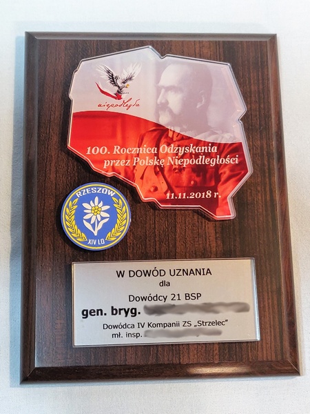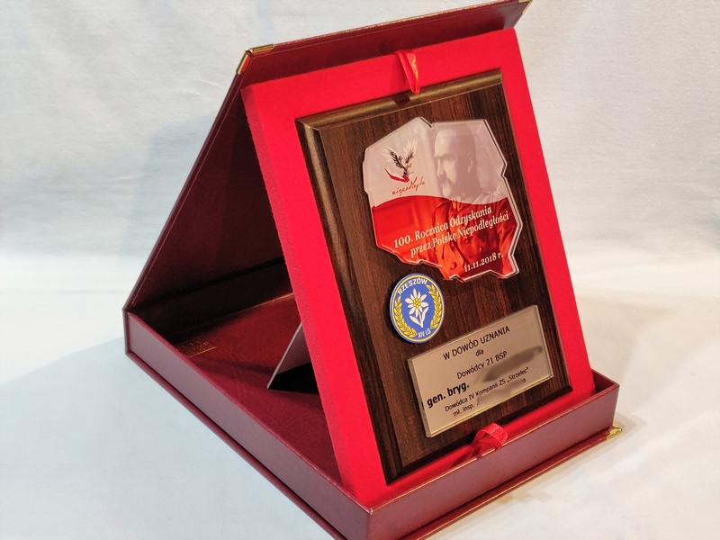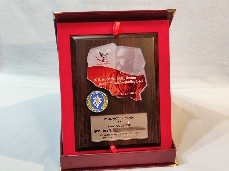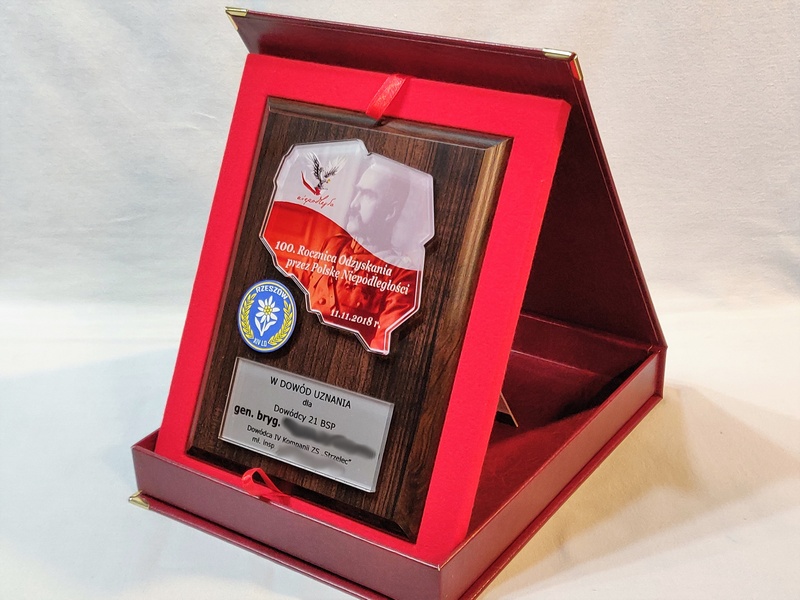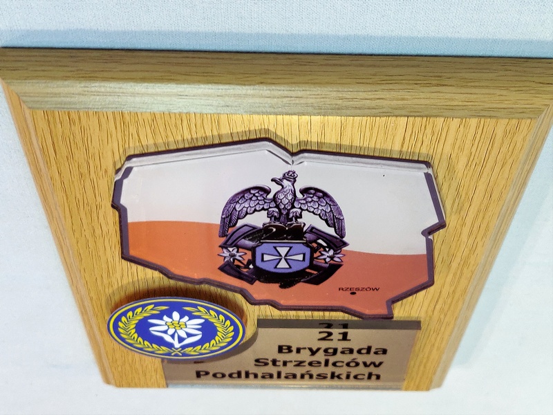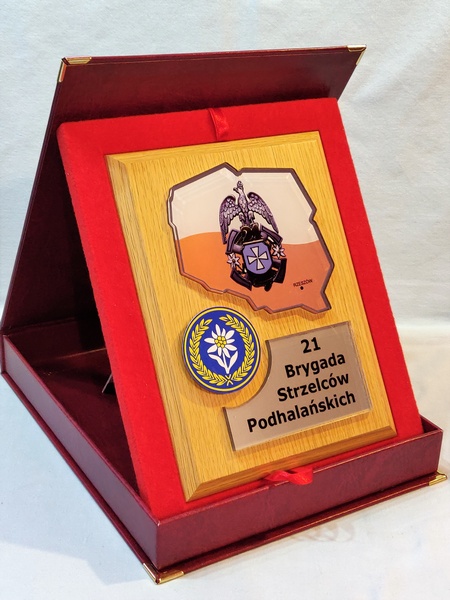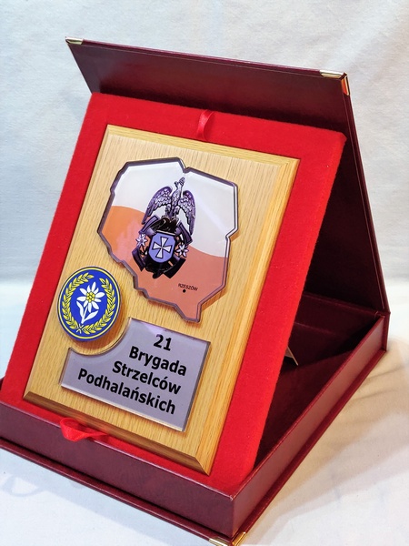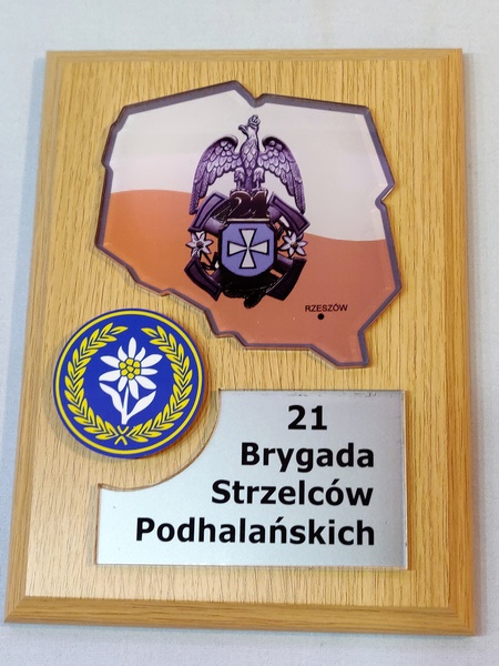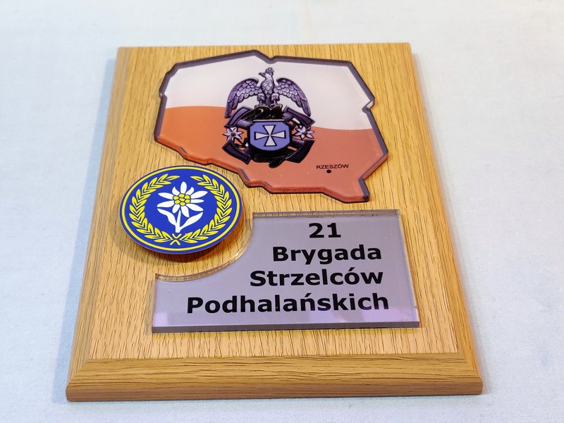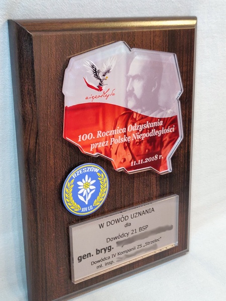 Mapa / odznaka / herb i dedykacja z pleksi mogą mieć dowolny kształt.