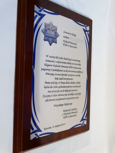 Pożegnanie na zakończenie służby - dyplom drewniany