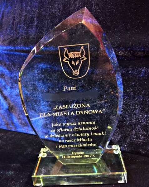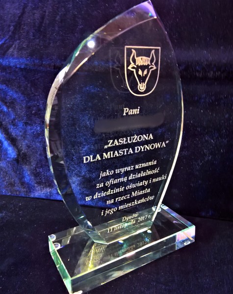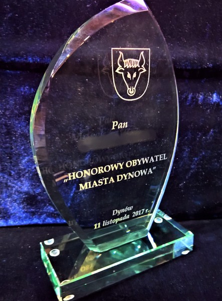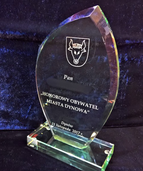 Można także wykonać pamiątkową nagrodę dla "honorowego / zasłużonego obywatela" na innym modelu statuetki szklanej.