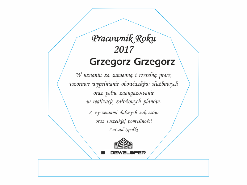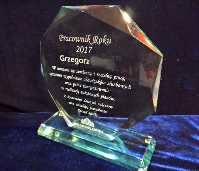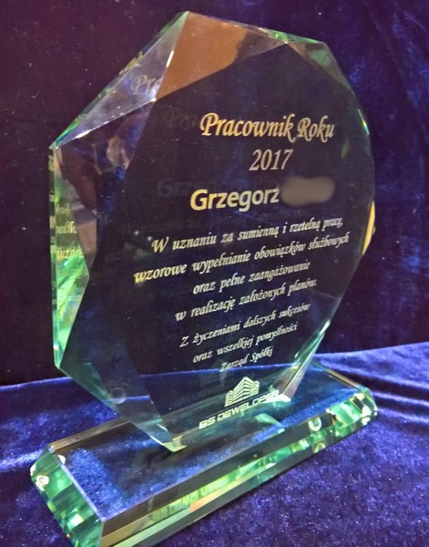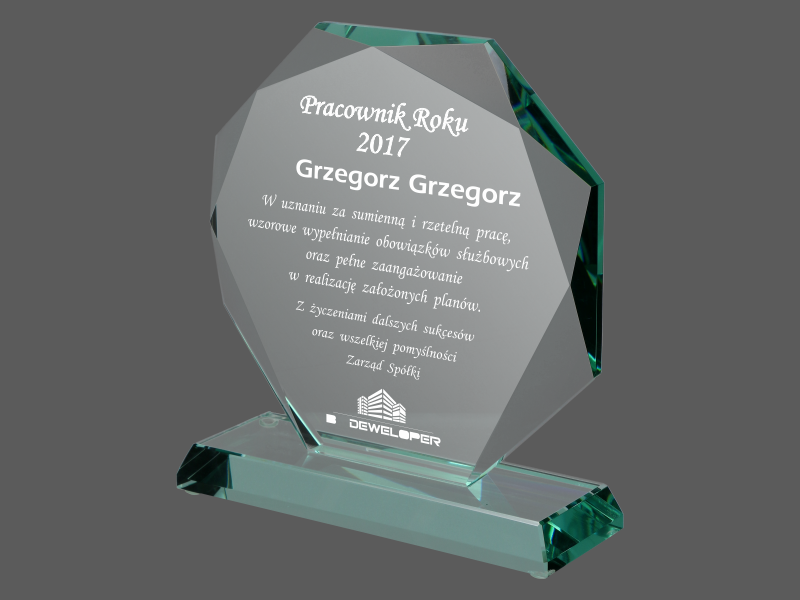 Można wykonać pamiątkową nagrodę dla "najlepszego pracownika" także na innym modelu statuetki szklanej.
