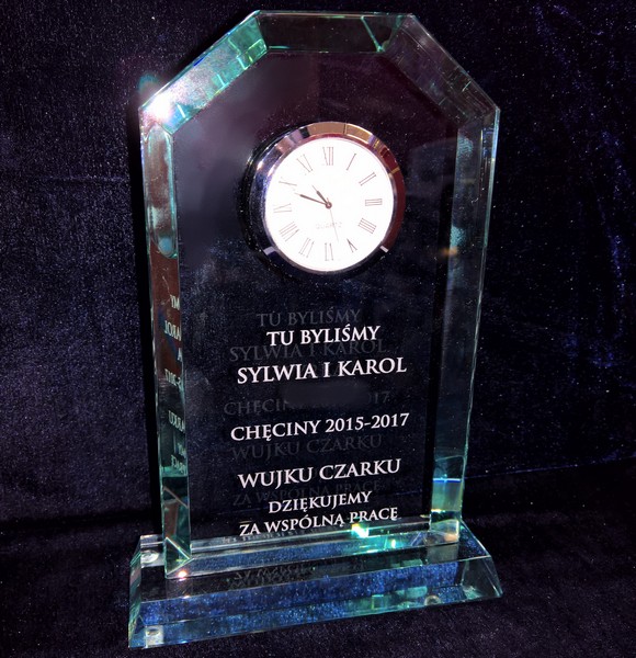 Można także wykonać pamiątkę za staż "pracy" na innym modelu statuetki szklanej.