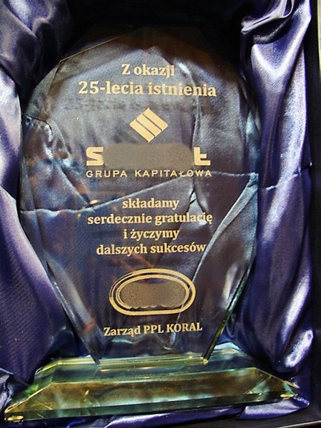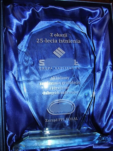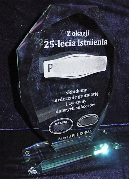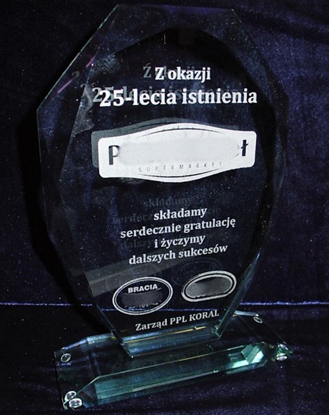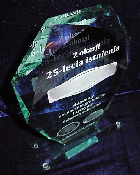 Można także wykonać statuetkę z okazji Jubileuszu na innym modelu statuetki szklanej.