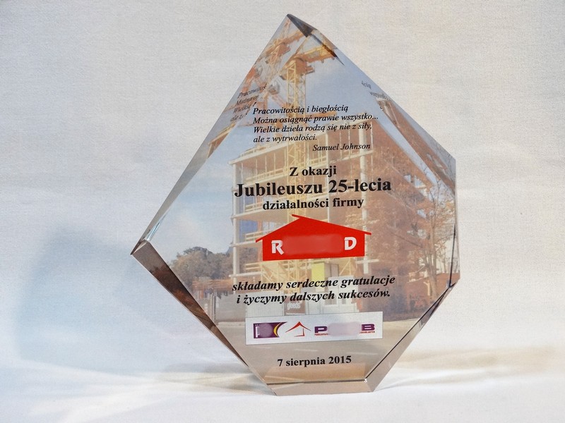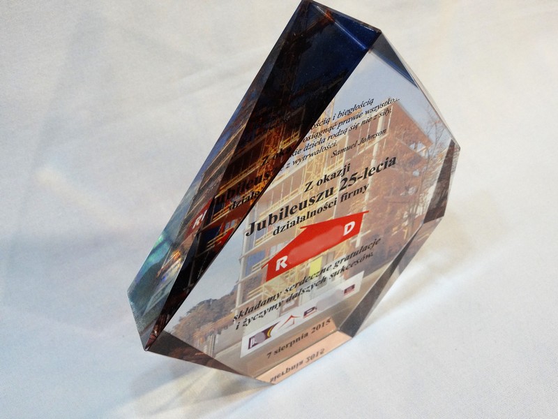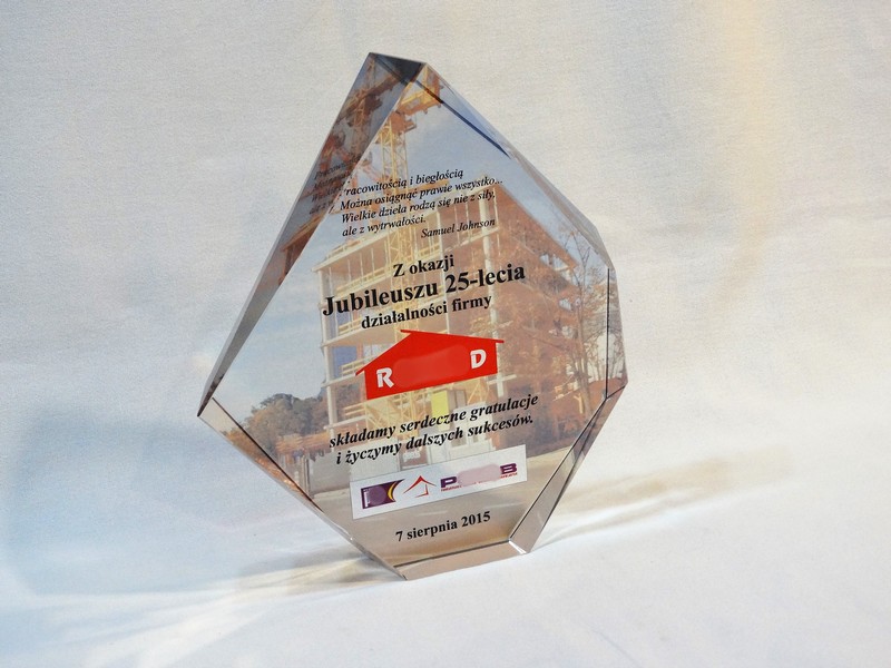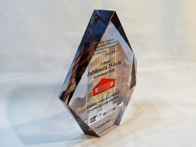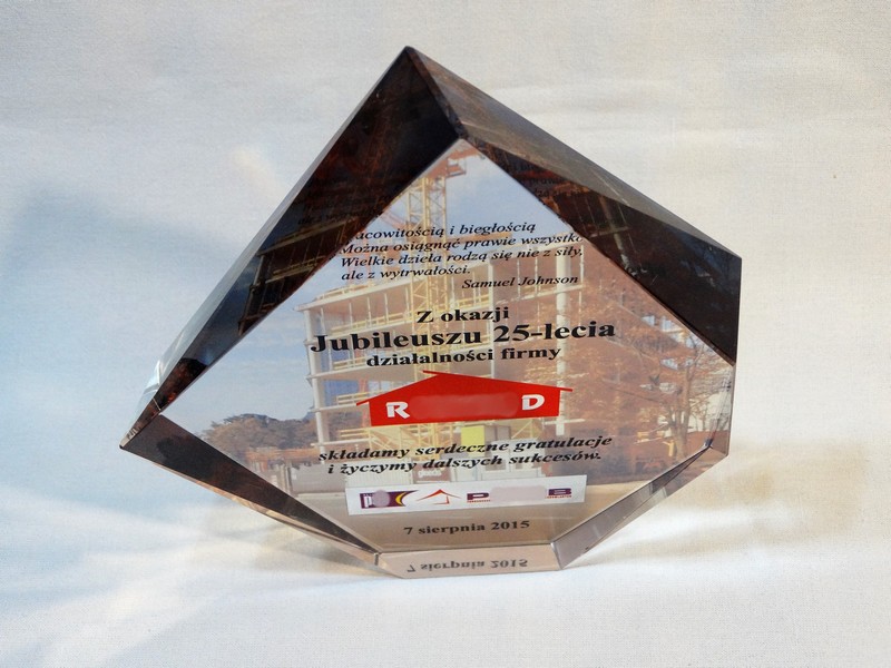 Jubileusz Działalności - statuetka szklana C036 z nadrukiem w etui