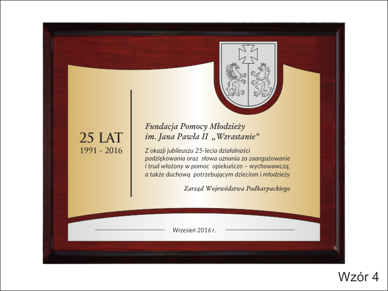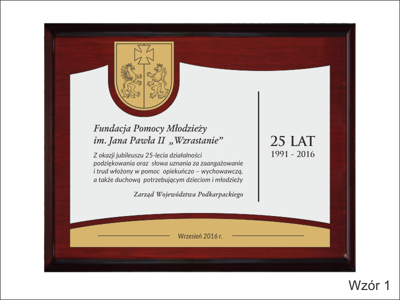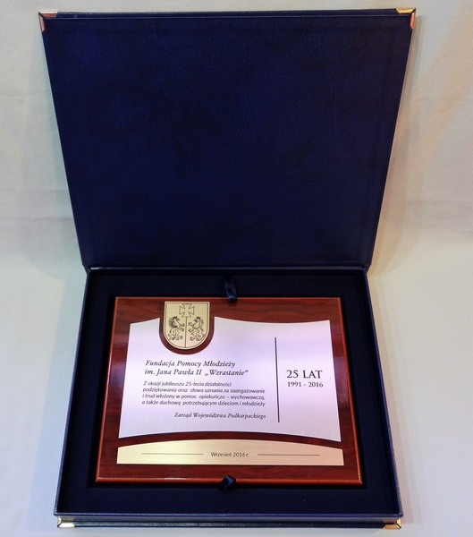 Prezentowany dyplom dedykowany jest jako jubileusz działalności fundacji, ale można wykonać go też na inną okoliczność.