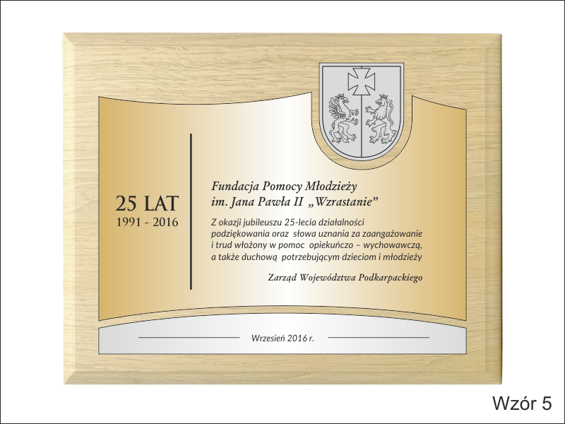 Istnieje możliwość wykonania dedykacji wg indywidualnych ustaleń i projektu uzgodnionego z klientem lub wg jednego z wzorów.