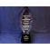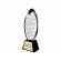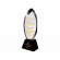 Statuetka ma kształt wydłużonego owalu pionowo osadzonego na czarnym trapezowym postumencie.