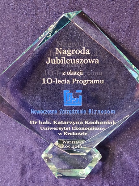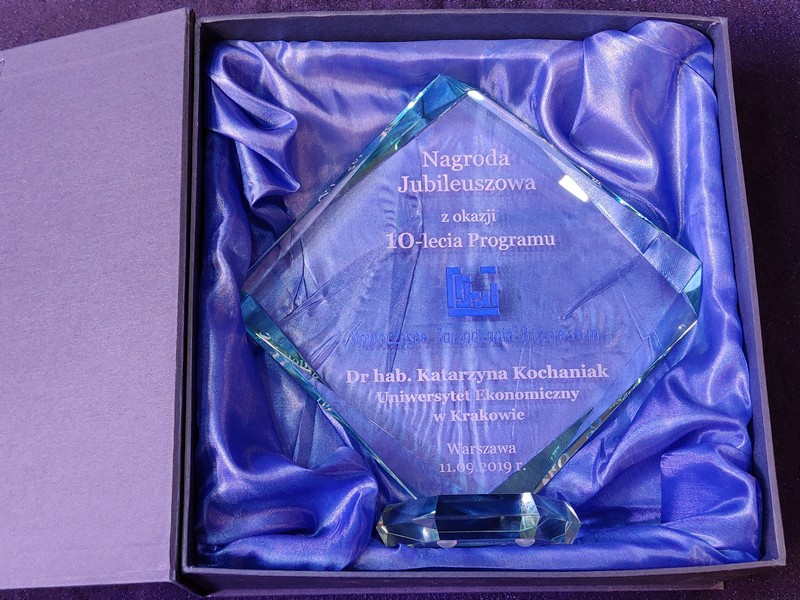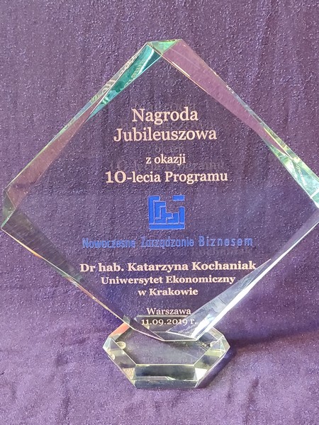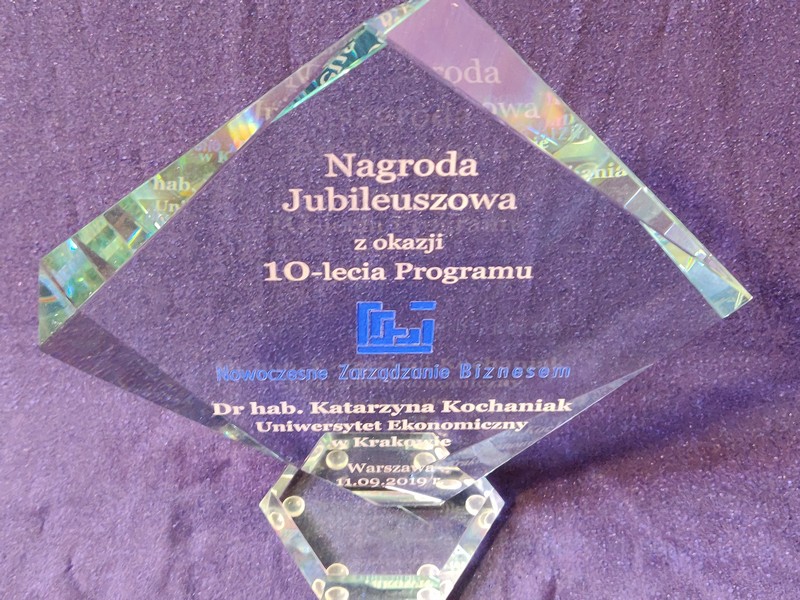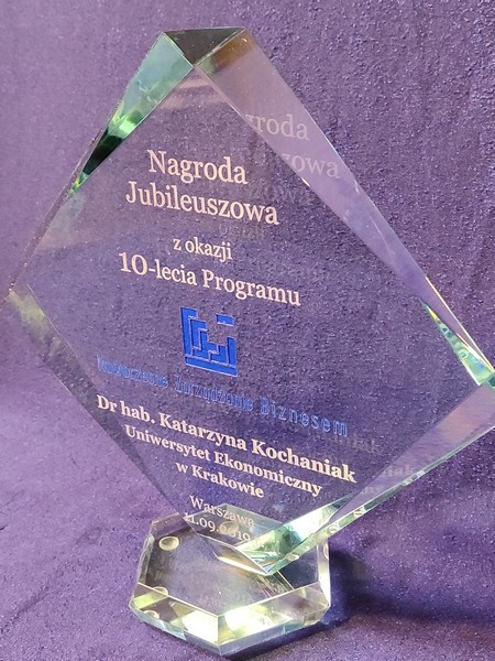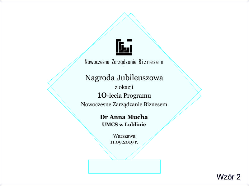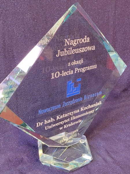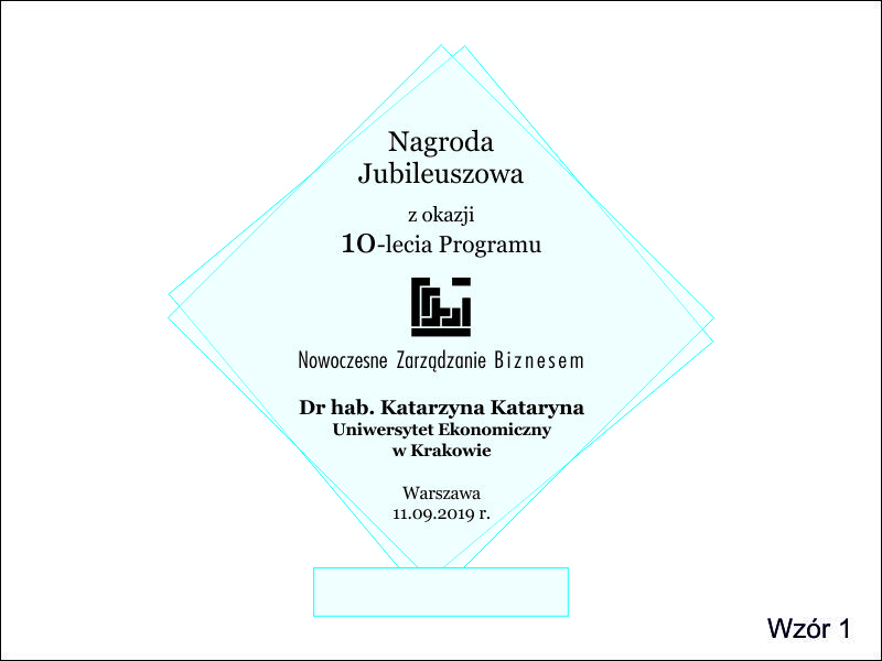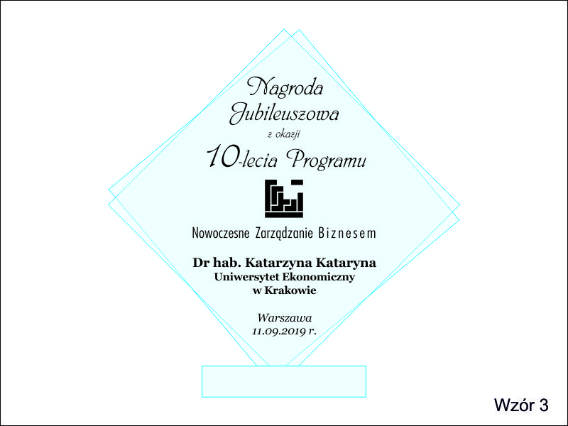 Nagroda jubileuszowa w postaci statuetki szklanej G022 z grubego szlifowanego szkła z grawerem dedykacji.