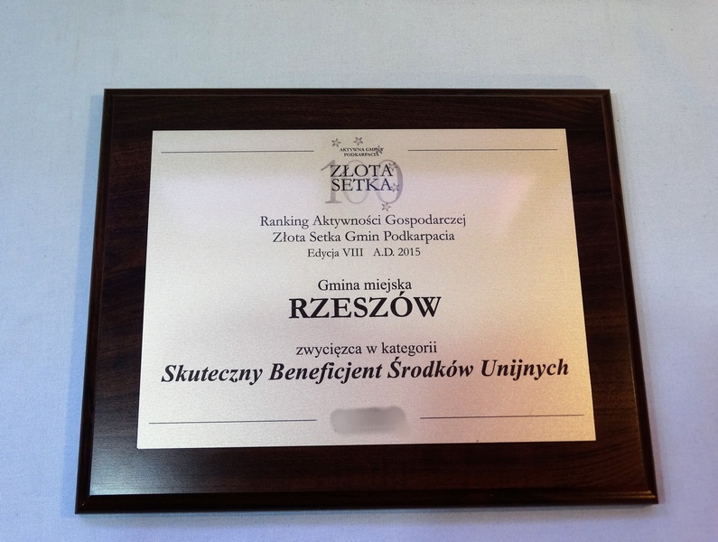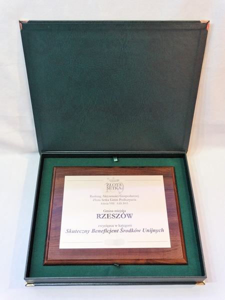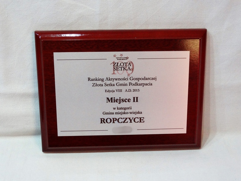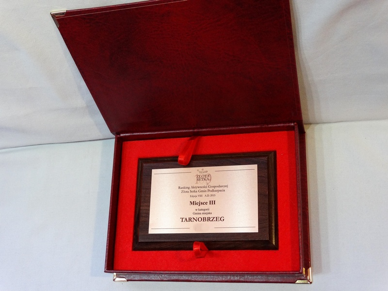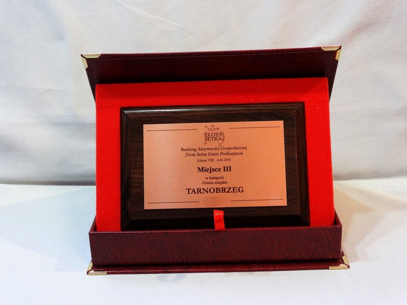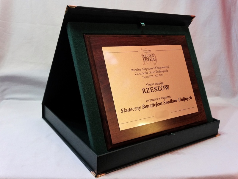 Nagroda, Wyróżnienie w postaci dyplomu okolicznościowego na drewnianym standardowym podkładzie z blachą z nadrukiem.