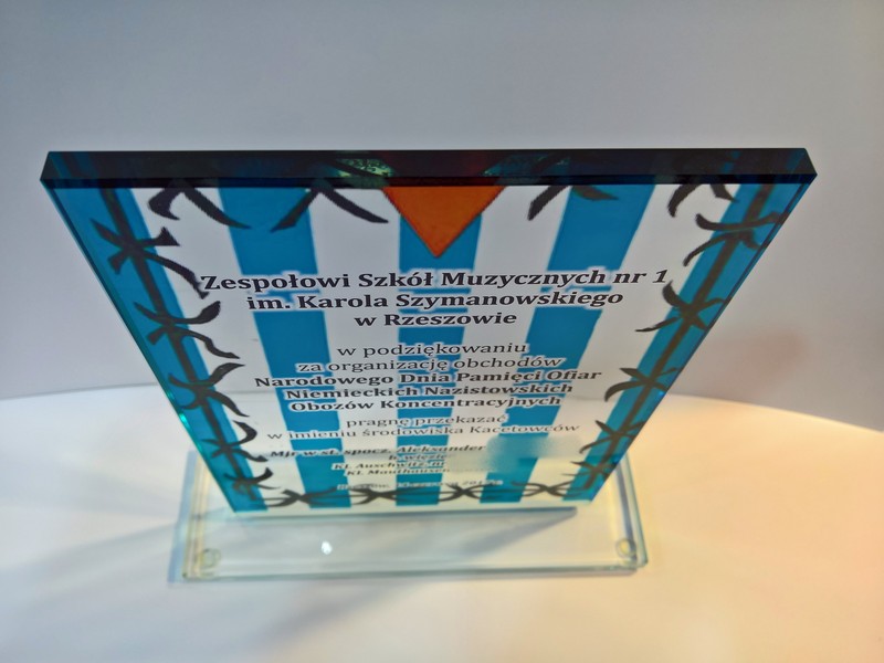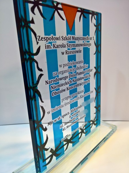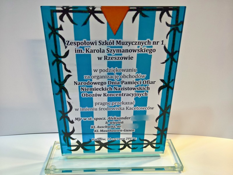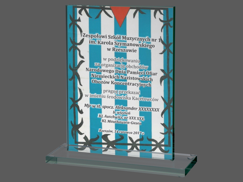 Podziękowanie za wsparcie w formie statuetki szklanej 80033 (80032, 80031) z nadrukiem.