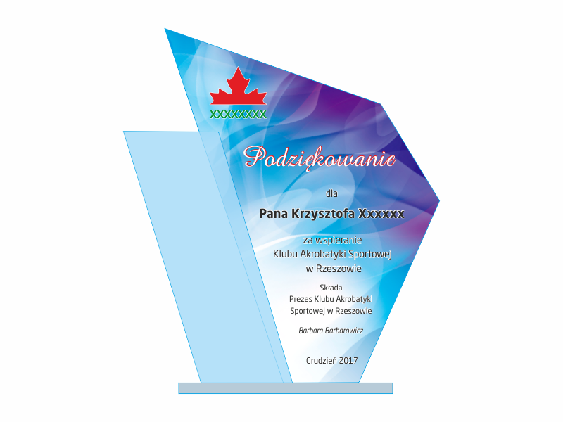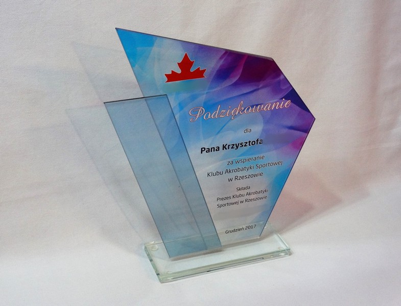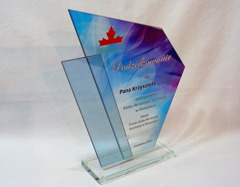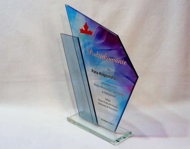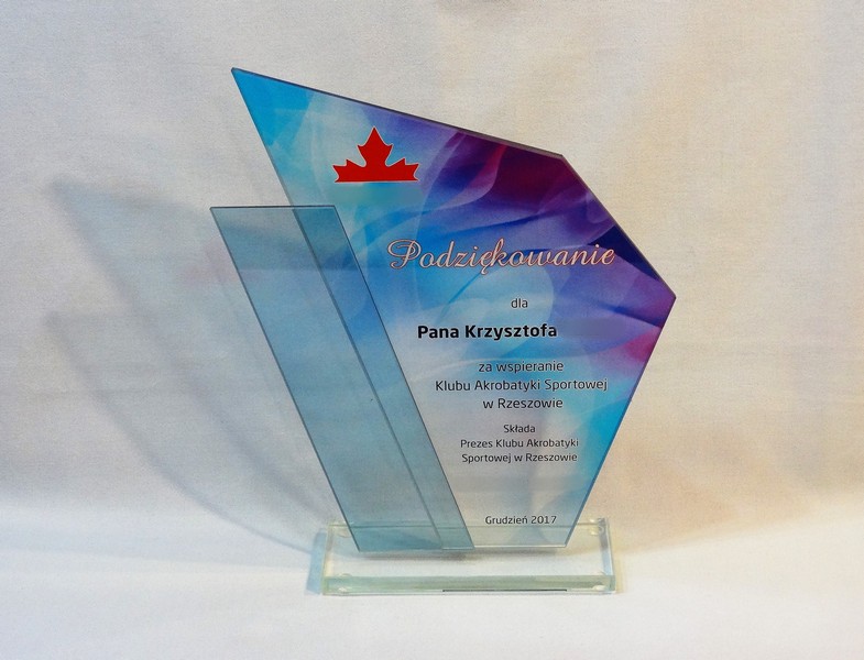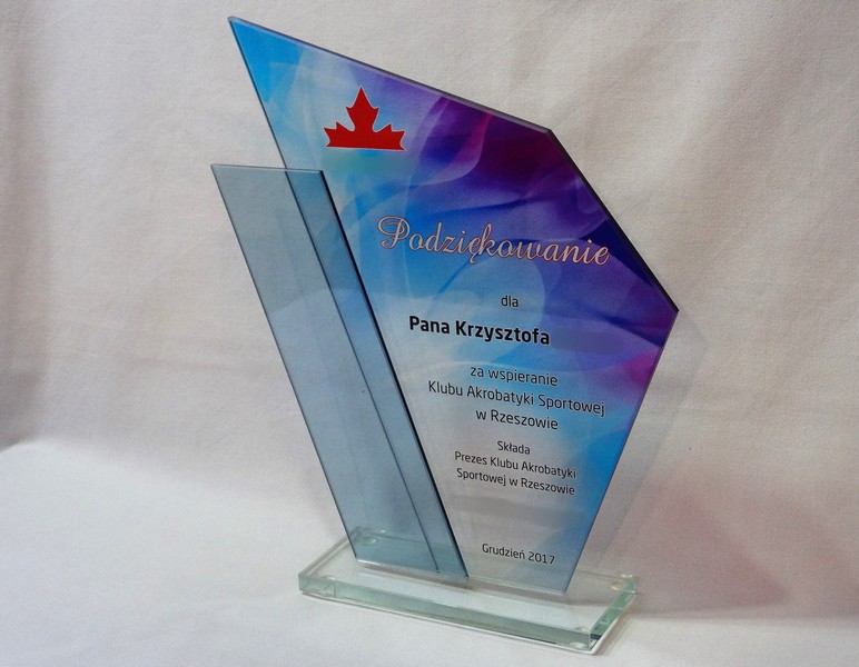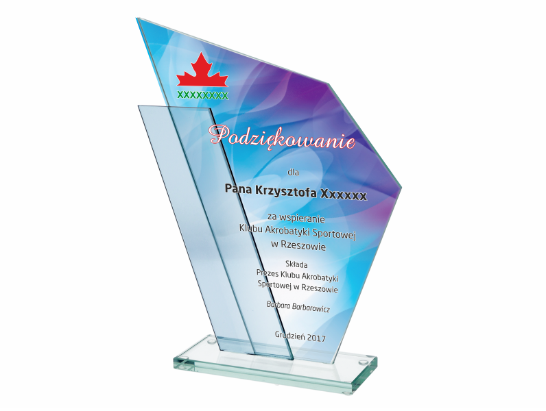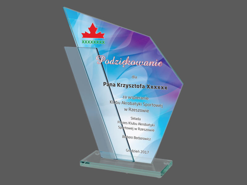 Można także wykonać pamiątkową statuetkę "Podziękowanie" na innym modelu statuetki szklanej.