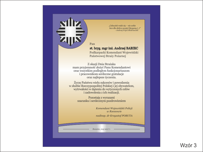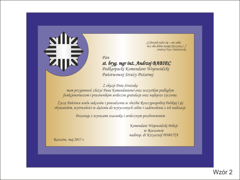 Istnieje możliwość wykonania dedykacji wg indywidualnych ustaleń i projektu uzgodnionego z klientem lub wg jednego z wzorów.