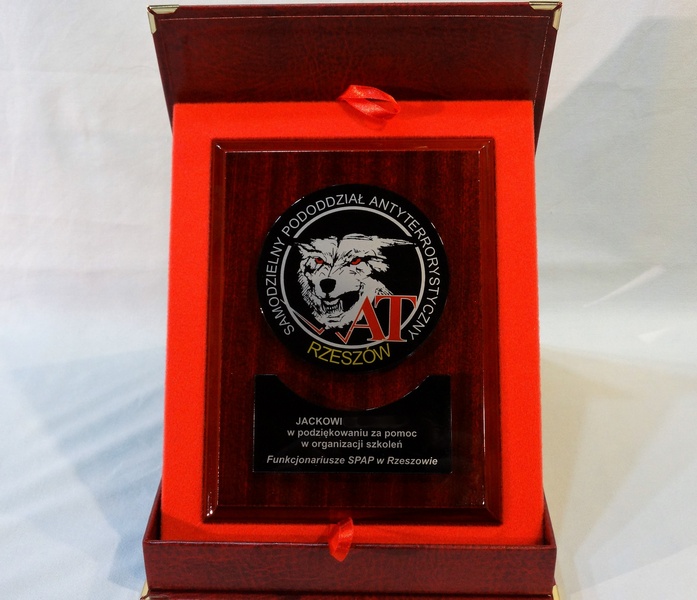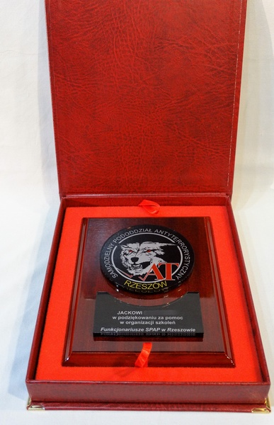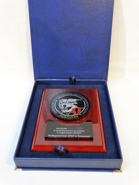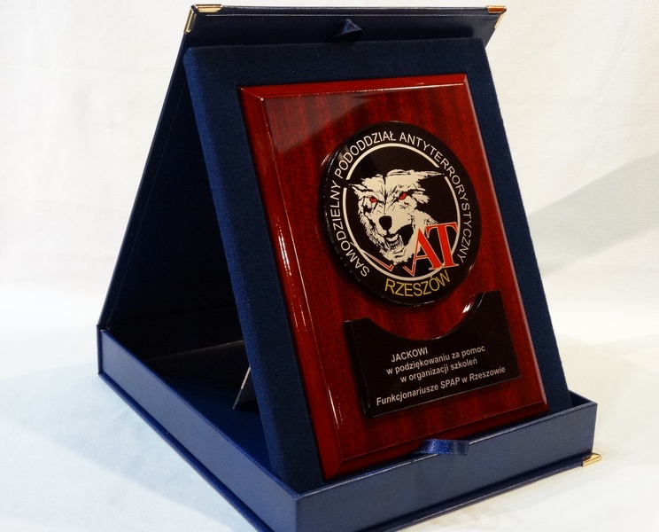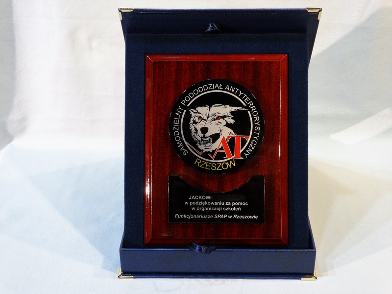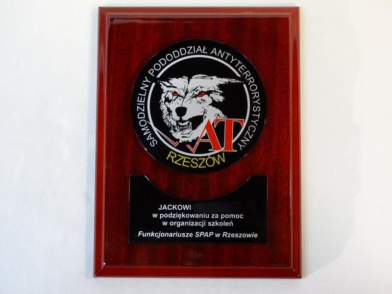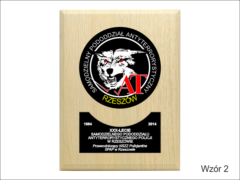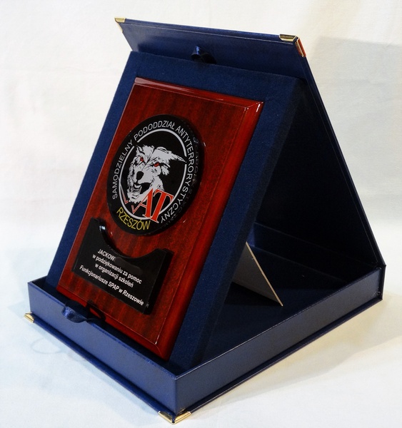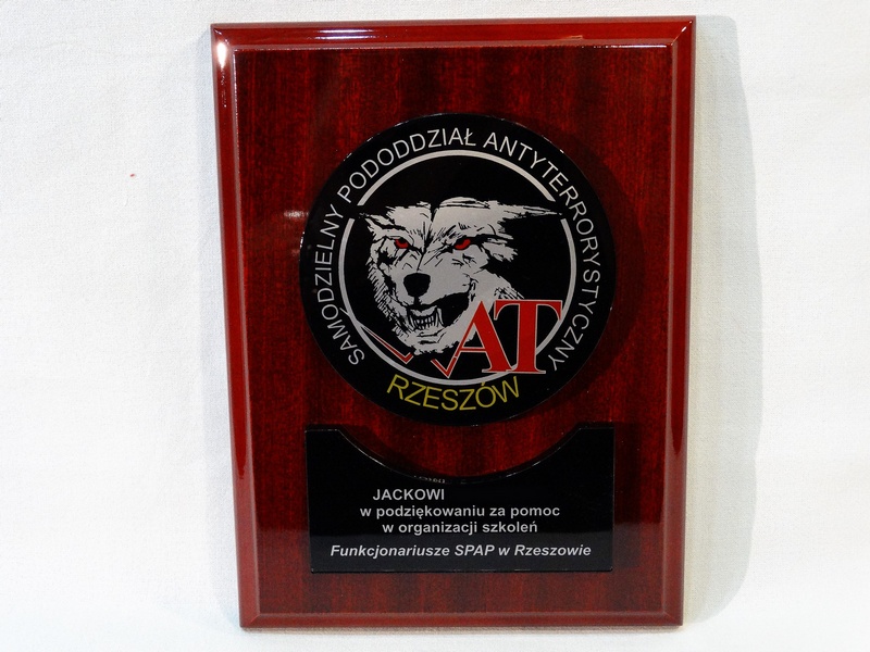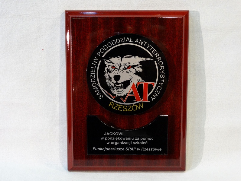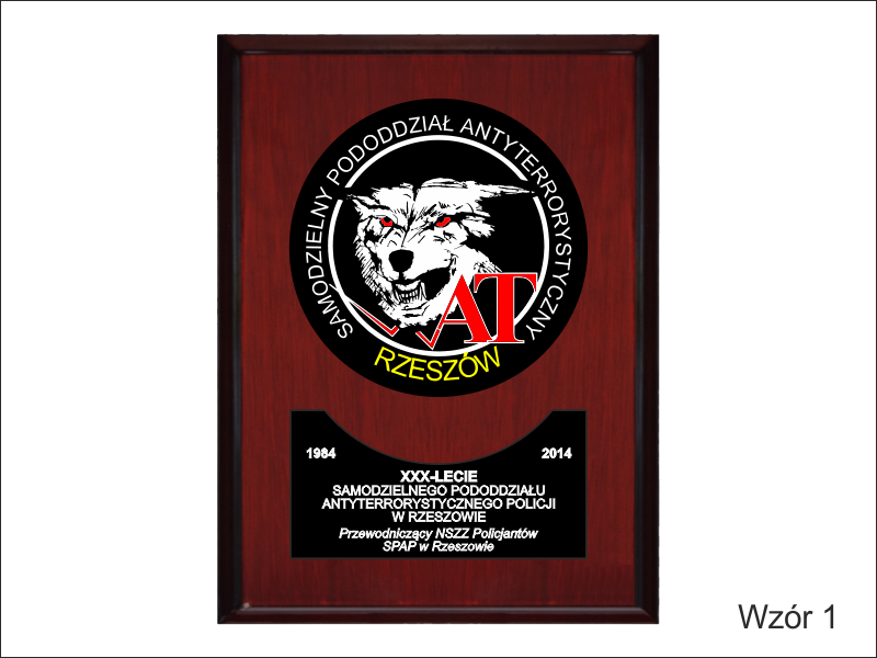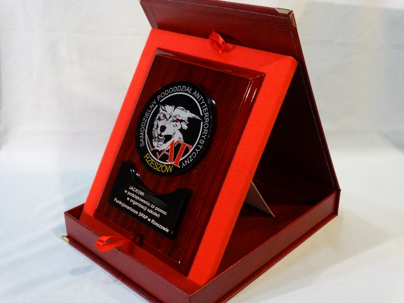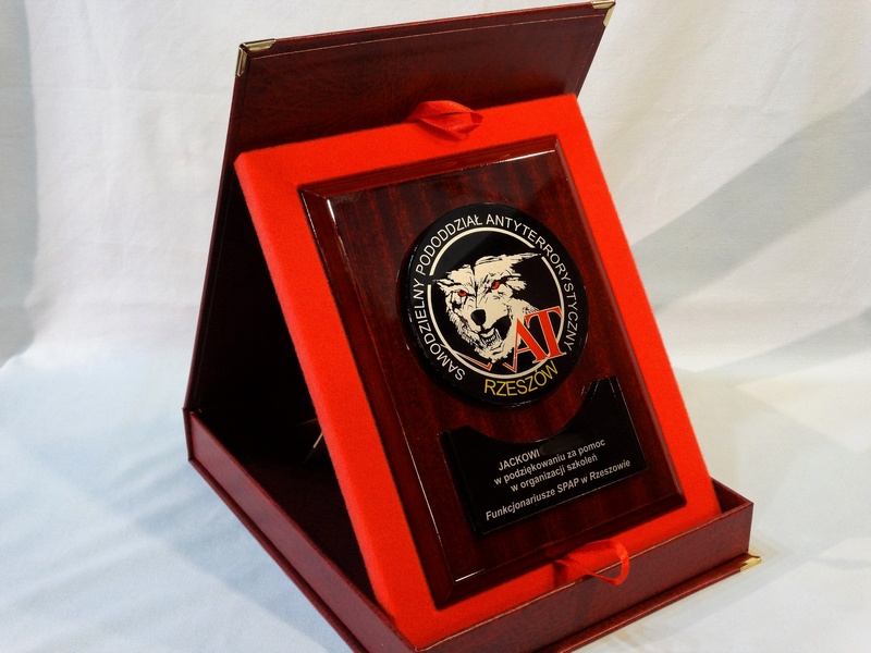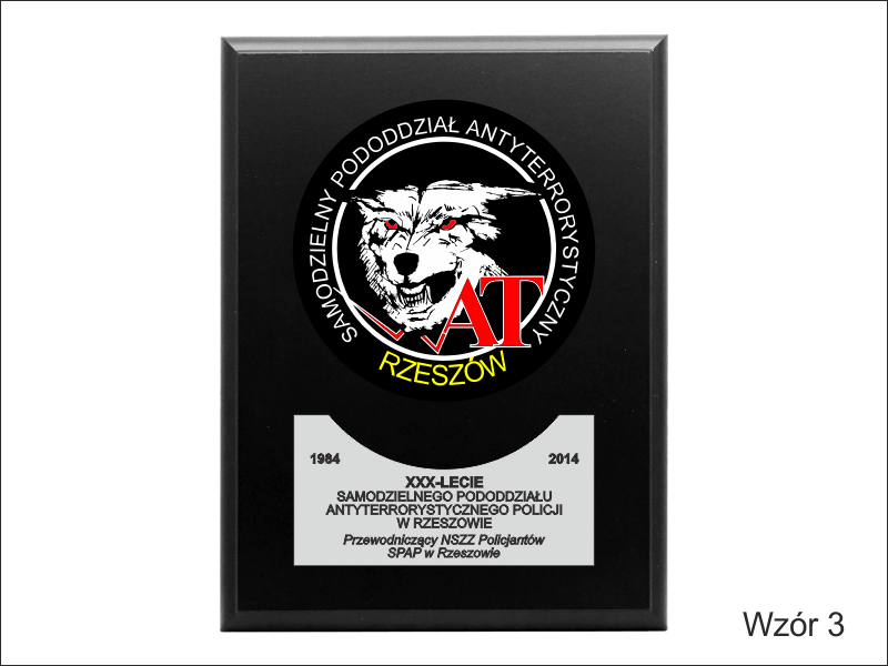 - z dodatkowej umieszczonej pod herbem bezbarwnej pleksi z nadrukiem dedykacji oraz