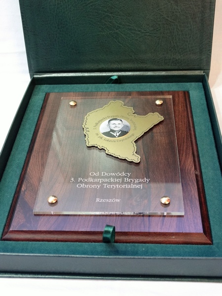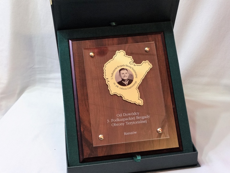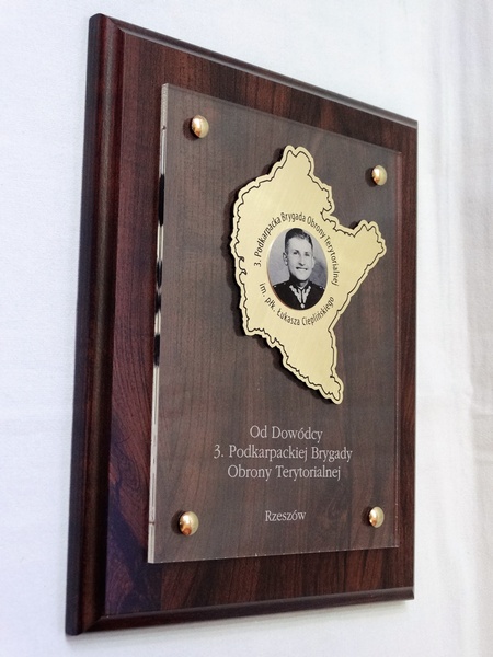 Ryngraf pamiątkowy - dyplom drewniany z pleksi i laminatów