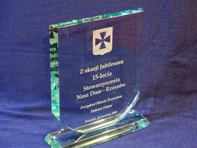 Można także wykonać pamiątkową statuetkę "jubileuszową" na innym modelu statuetki szklanej.