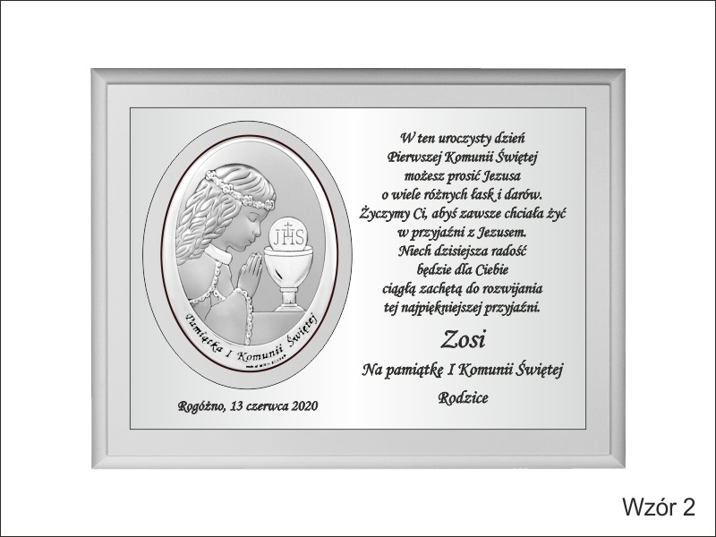 Istnieje możliwość wykonania pamiątki wg jednego z przedstawionych wzorów lub wg indywidualnych ustaleń i projektu.