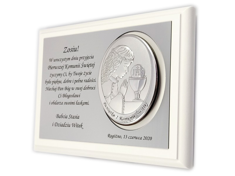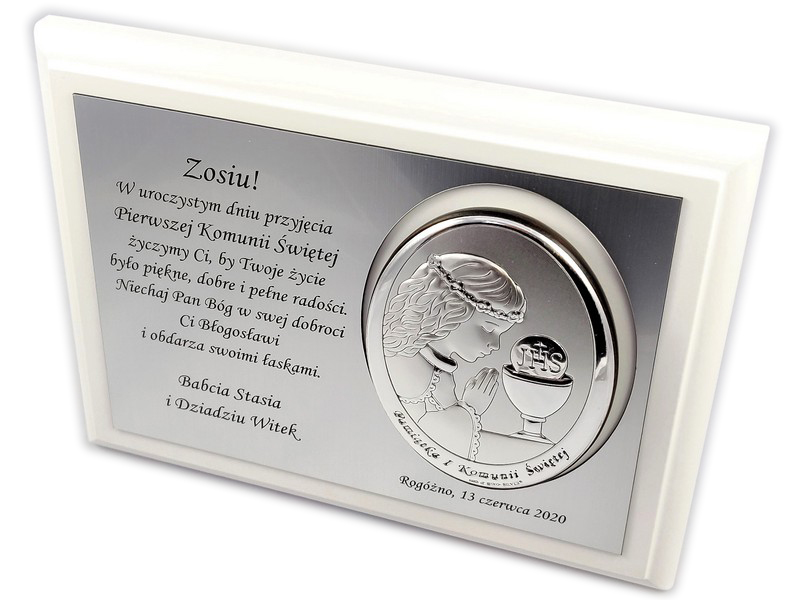 Pamiątkowy wyjątkowy upominek z okazji przyjęcia Pierwszej Komunii Świętej dla dziewczynki.