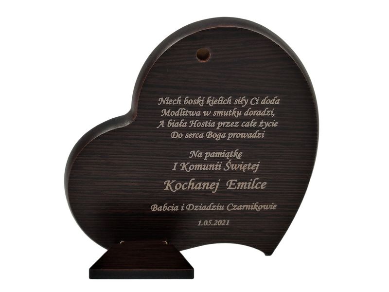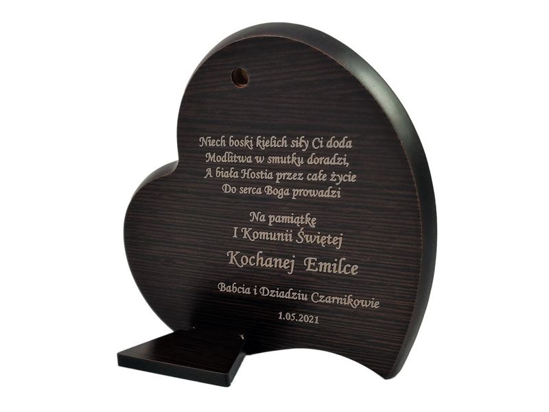 Grawer dedykacji wykonany jest bezpośrednio w drewnie lub na osobnej dołączonej tabliczce.