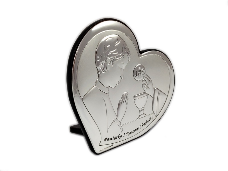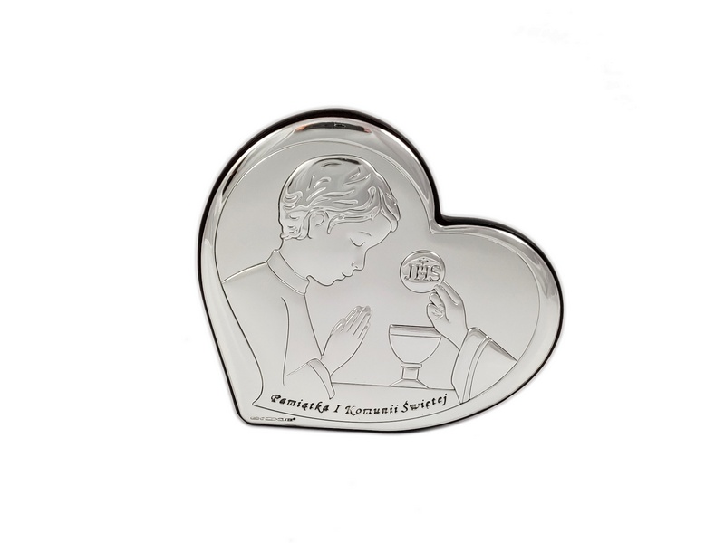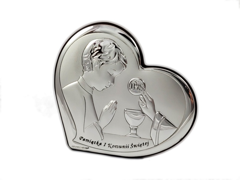 Srebrny obrazek będzie doskonałym prezent na pamiątkę przyjęcia Sakramentu I Komunii Świętej lub Rocznicę przyjęcia I Komunii Św.