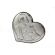 Obrazek w kształcie serca na pamiątkę I Komunii Świętej przedstawia wizerunek chłopczyka, Hostii i kielicha.