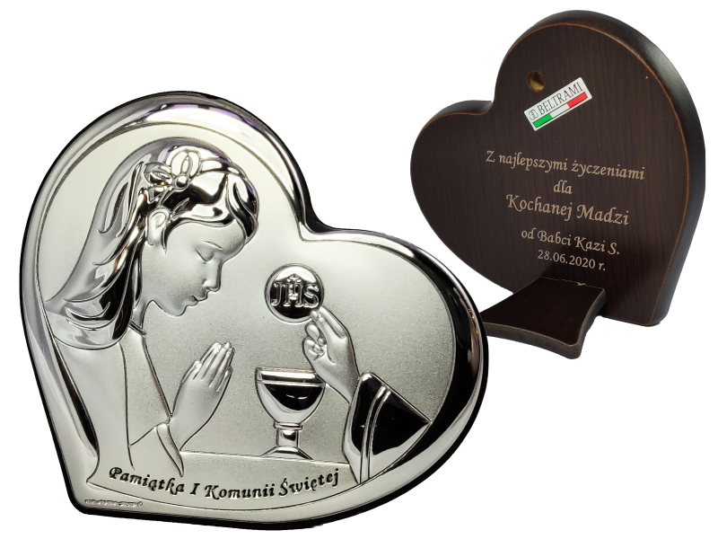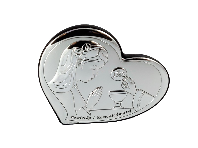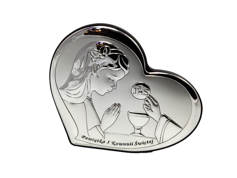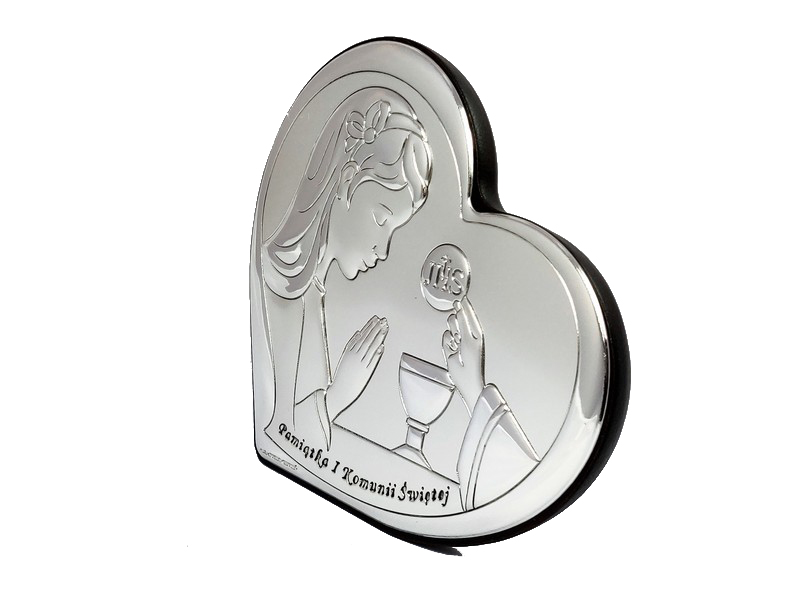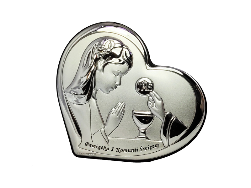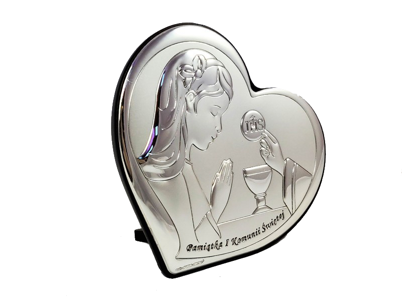Srebrny obrazek to doskonały prezent na pamiątkę przyjęcia Sakramentu I Komunii Świętej lub Rocznicę I Komunii Św.