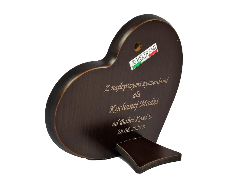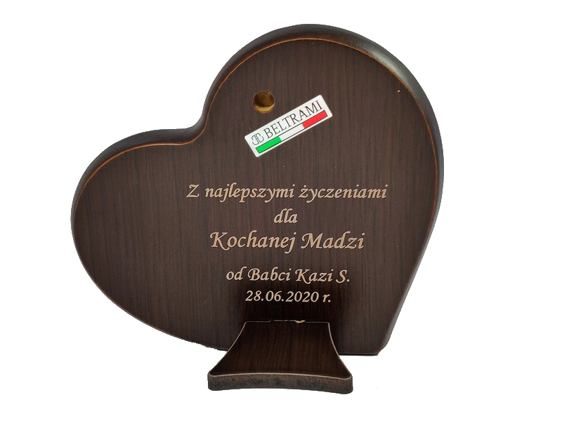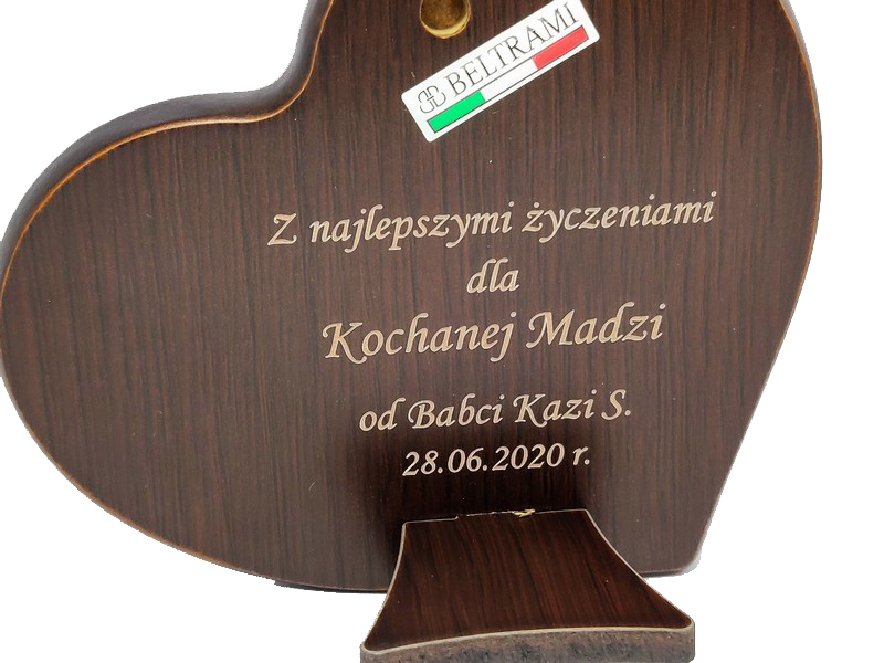 Grawer dedykacji wykonany jest bezpośrednio w drewnie lub też na dołączonej tabliczce.