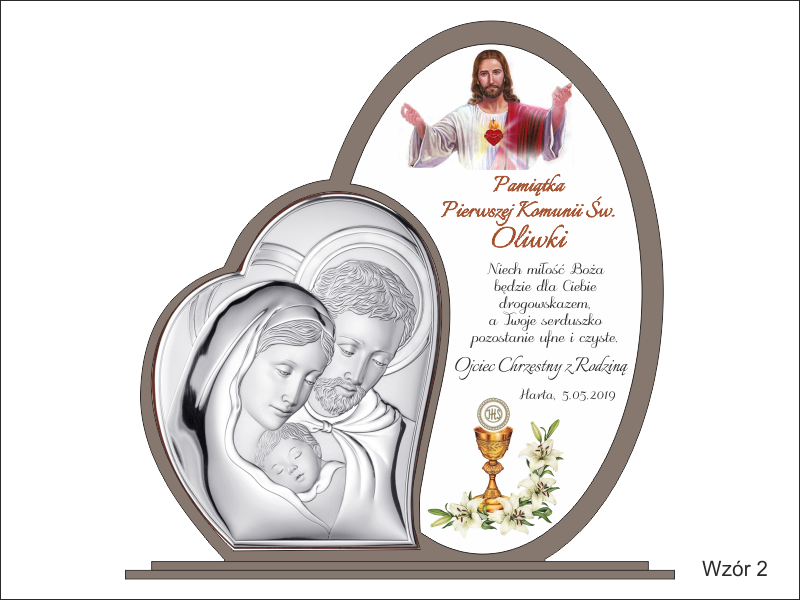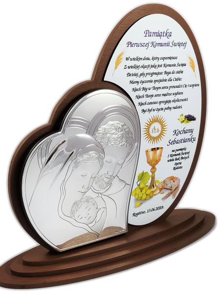 - z obrazka srebrnego "Święta Rodzina 81050" w kształcie serca wielkości 9 x 11 cm,