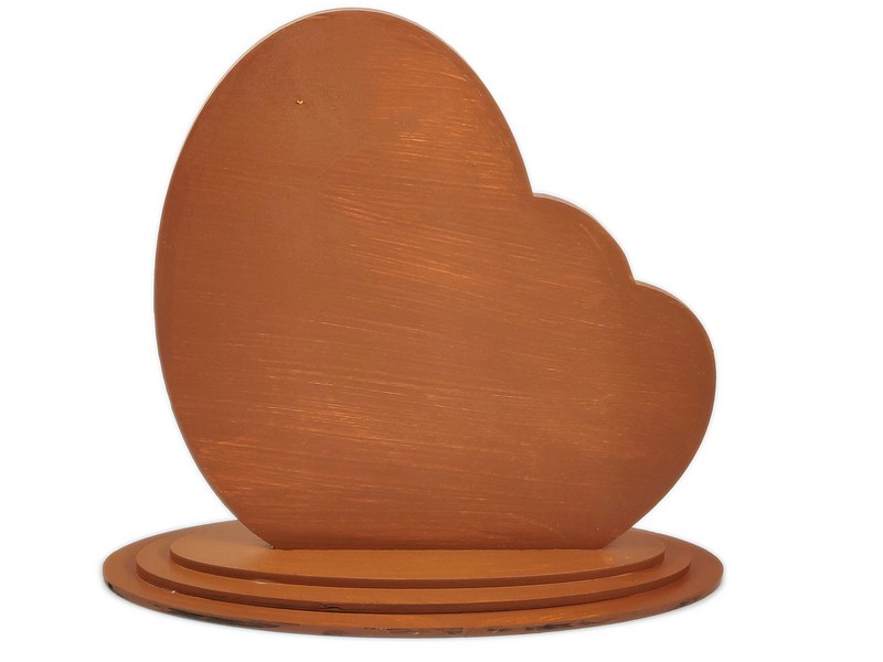 Statuetka drewniana ma wielkość 18 x 19 cm i wycięta jest ze sklejki pomalowanej następnie na brązowy kolor.