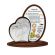 Obrazek srebrny przedstawia wizerunek Świętej Rodziny i ma kształt serca.