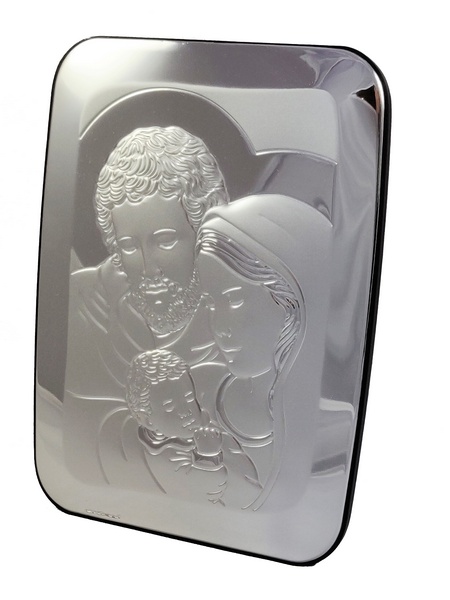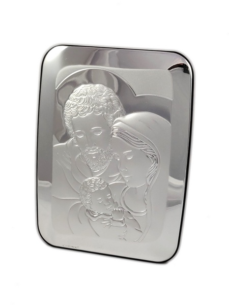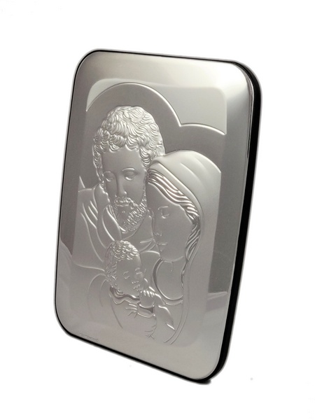 Srebrny obrazek "Święta Rodzina 6404" ma kształt prostokąta z zaokrąglonymi rogami.