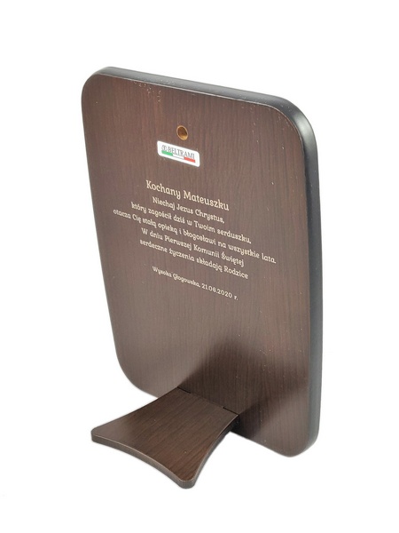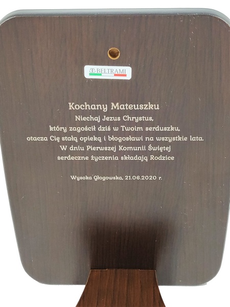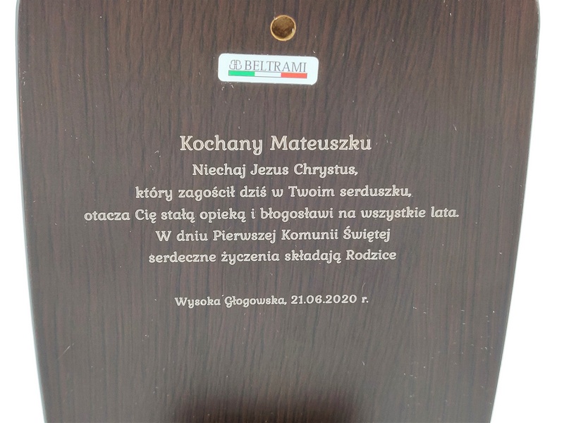 Grawer dedykacji wykonany jest bezpośrednio w drewnie lub na dołączonej tabliczce.