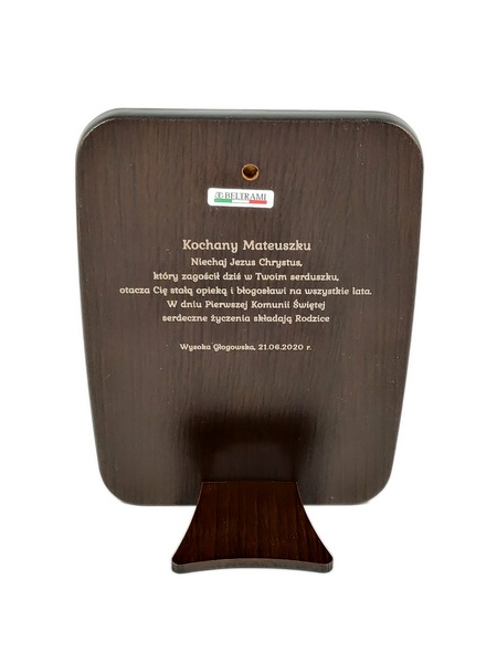 Grawer możliwy jest w drewnie na odwrocie obrazka lub na dołączonej tabliczce.