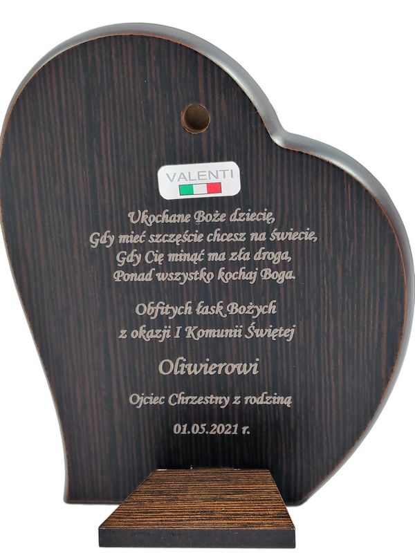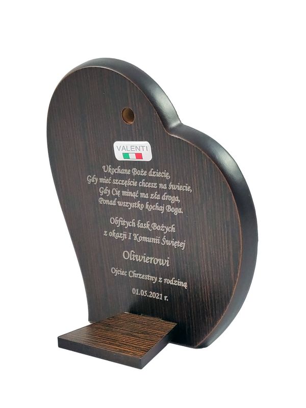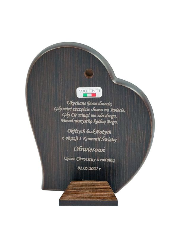 Grawer dedykacji może być wykonany bezpośrednio w drewnie lub na dołączonej tabliczce.